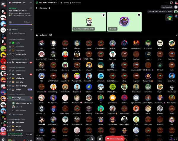 The hype around this mint was huge, with a solid community championing the cause across CT and Discord. This is not some superficial, surface-level community either — these folks have legit connections, and the energy really is like an after-school hang out: wholesome, genuine and pure fun. On mint day they hosted a mint party on Discord with a DJ and honestly, it was lit.