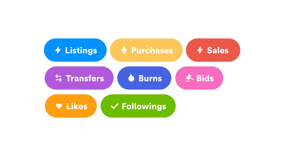 You can track all listings, sales, bids, likes, follows and more in the new Activity tab. Monitor what’s up with you, your followings, and the entire marketplace.