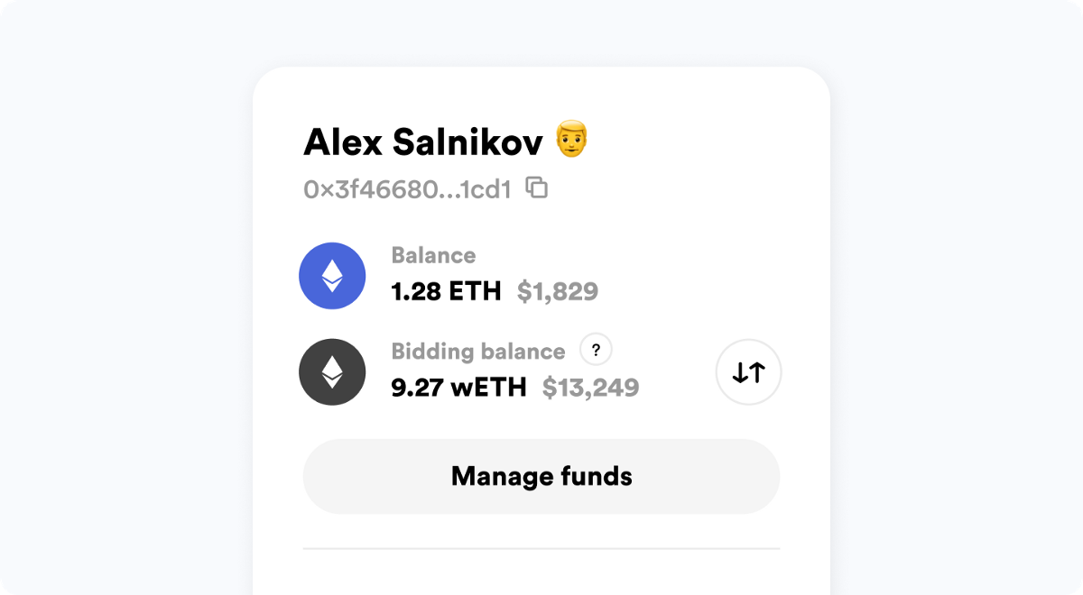 We’ve fixed a major confusion with WETH balance that you couldn’t see. Now your bidding balance and a converter tool are always at hand in the user menu.
