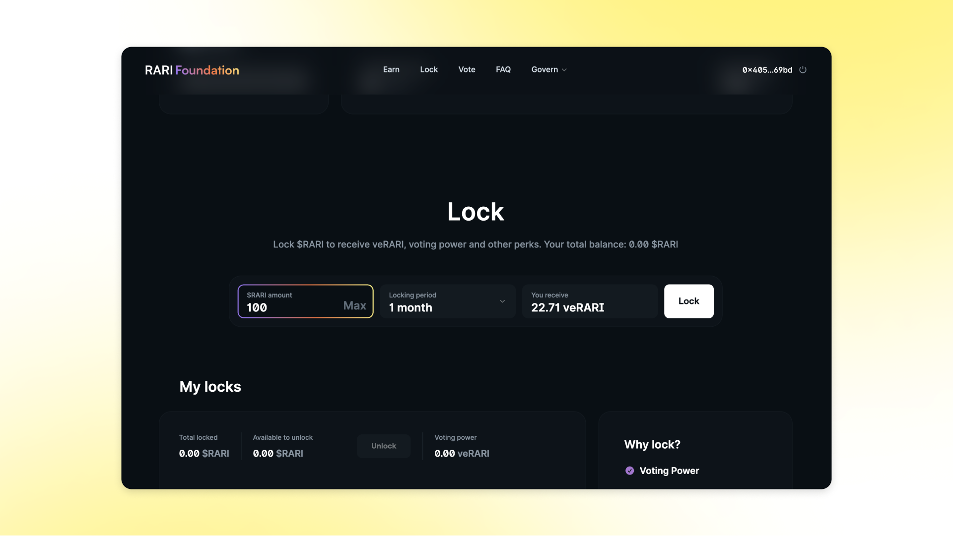 You can now lock $RARI to unlock more benefits and govern the Rarible Protocol through the RARI Foundation.